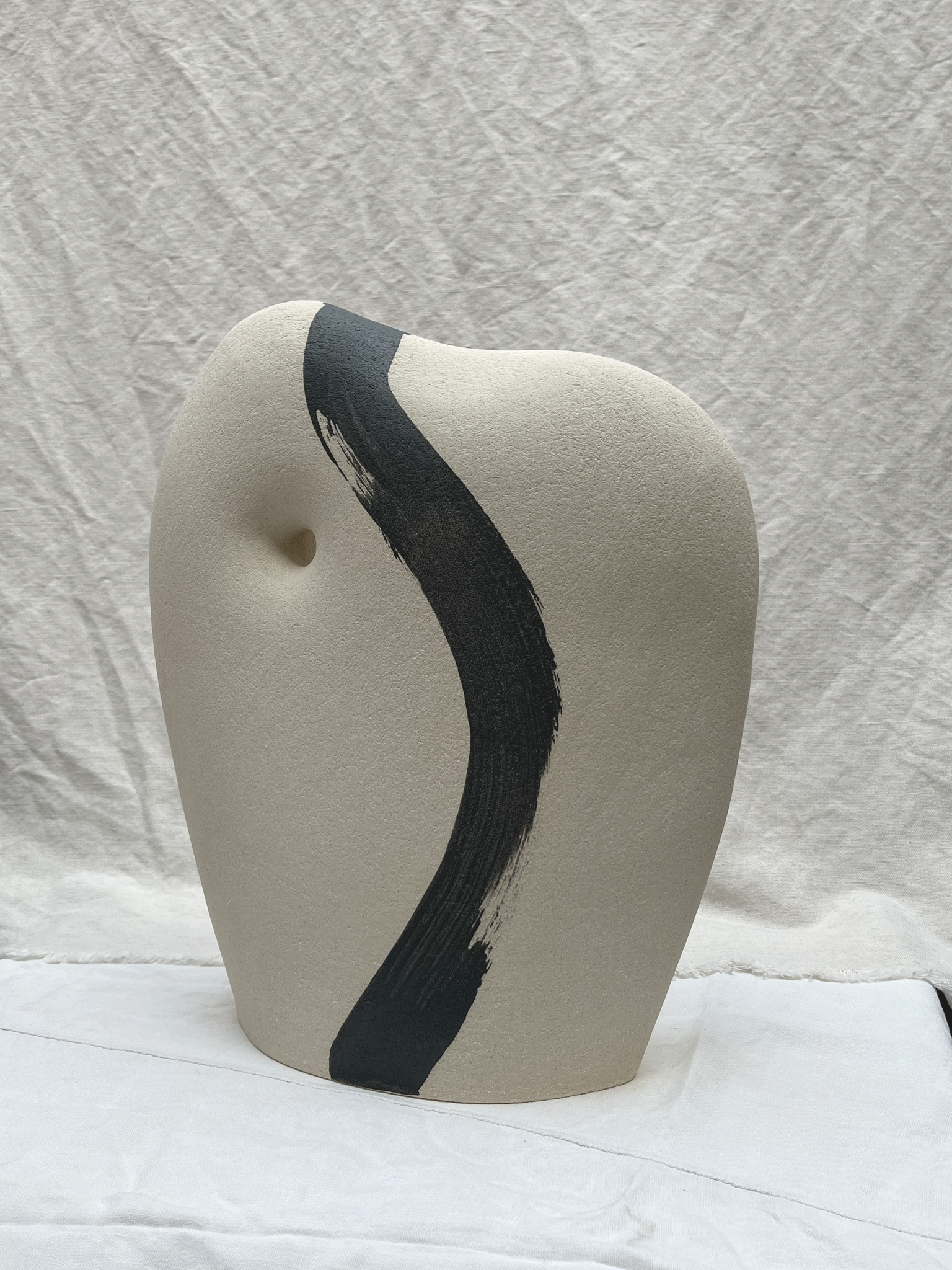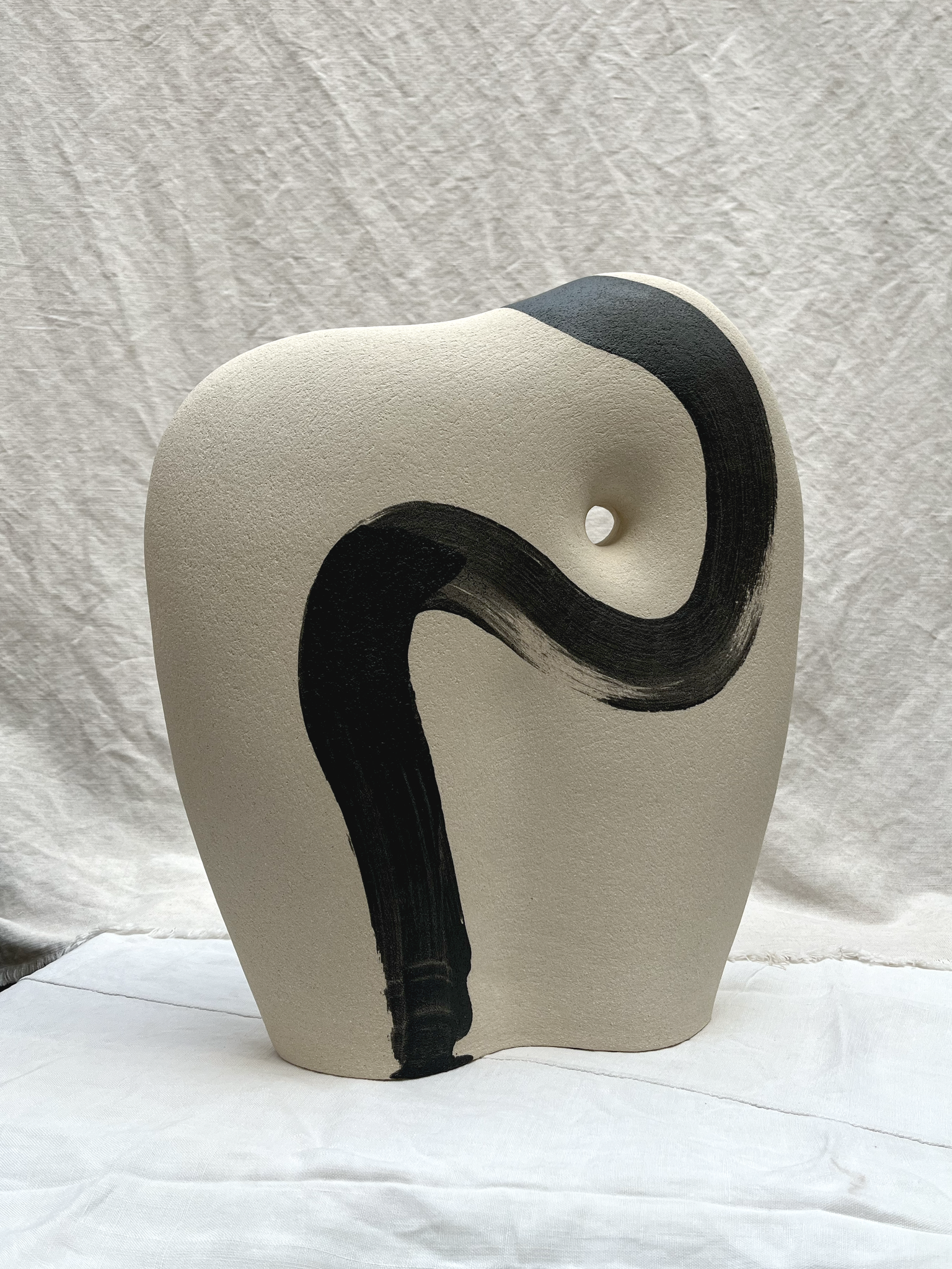 Pièce unique en grès brut engobé de noir.